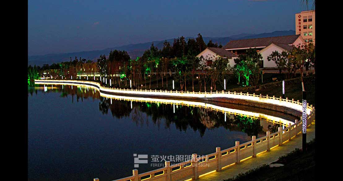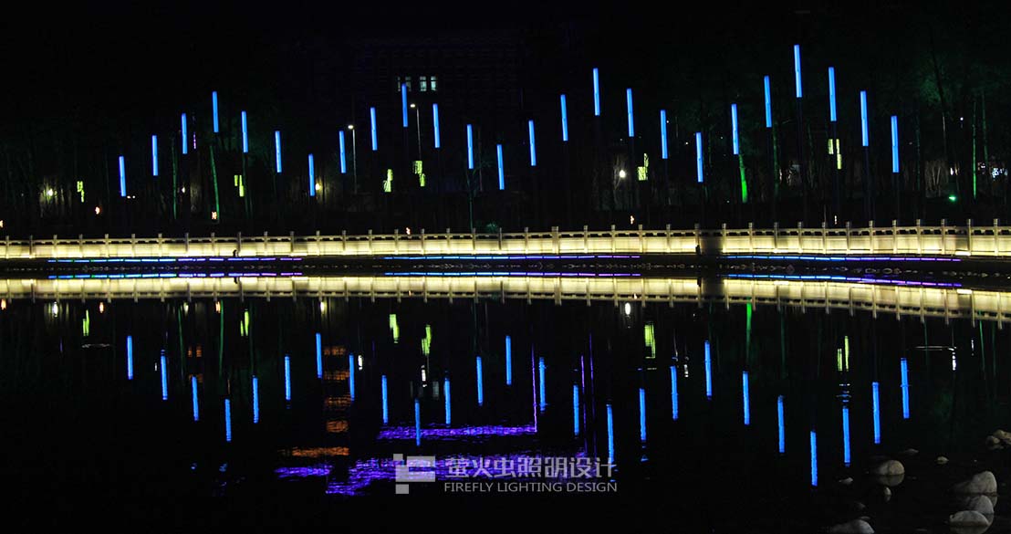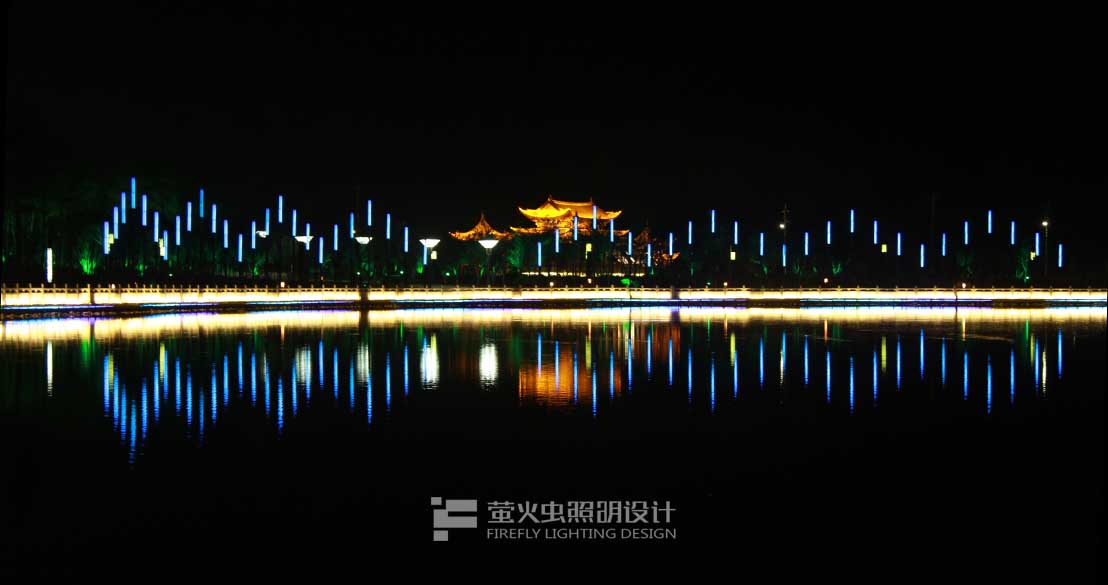 “活力親水”:兩河及湖心區(qū)景觀岸線較豐富,且設(shè)置很多親水平臺,使城市居民感受大自然的靈感。因此夜間景觀照明應(yīng)在滿足居民安全親水的前提下,營造良好的水體與景觀相交融的效果。