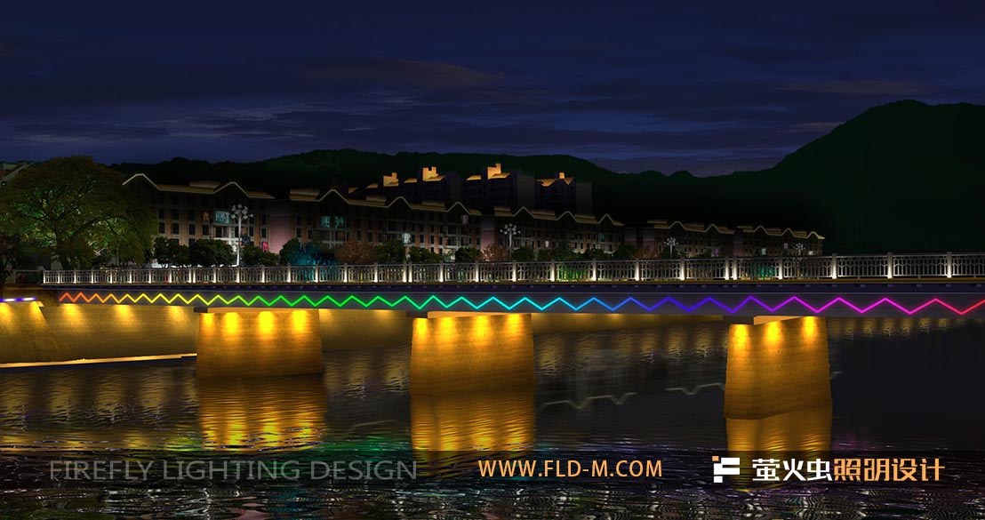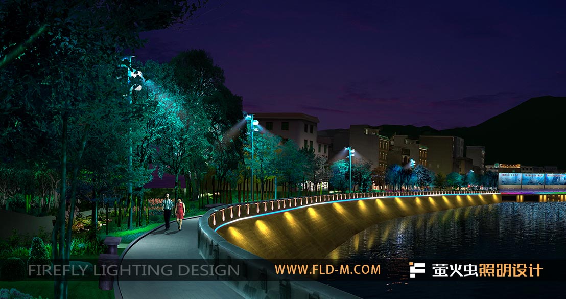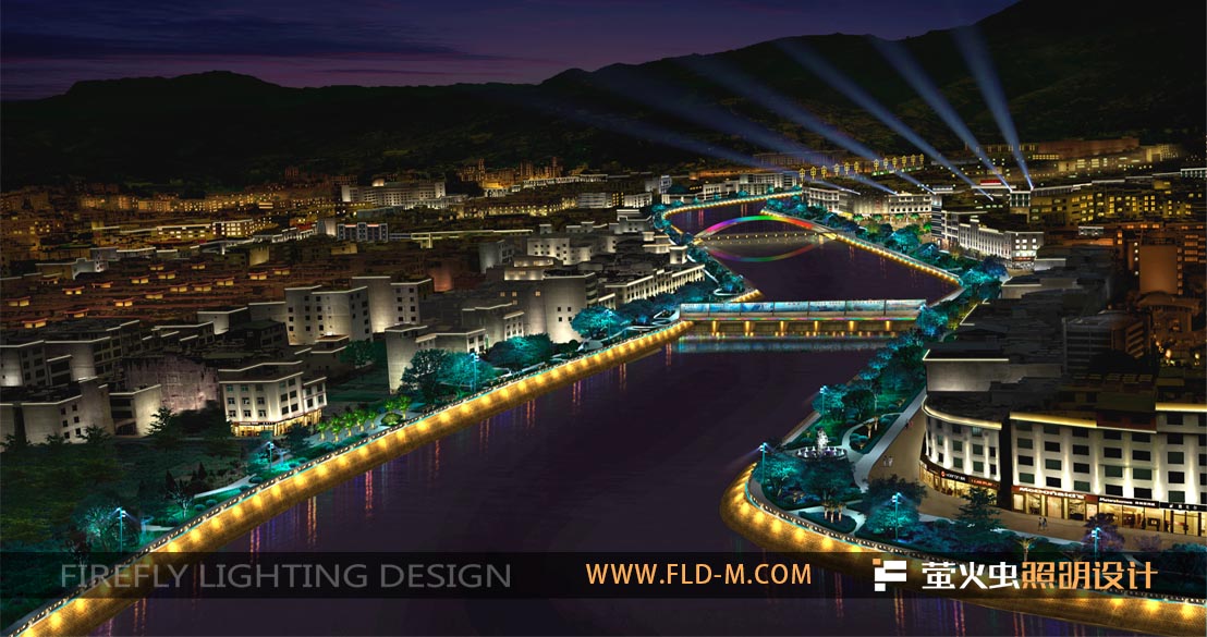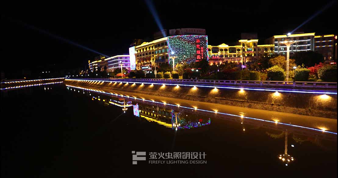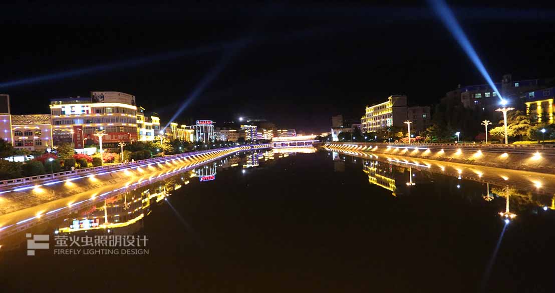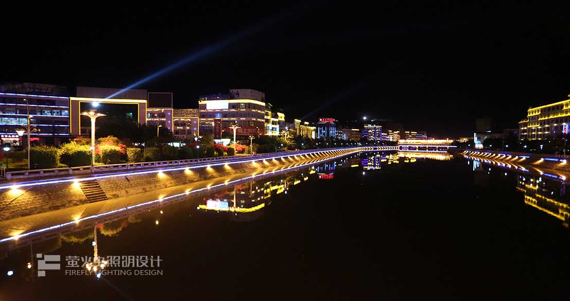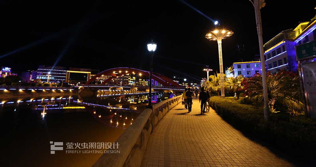 此次照明規(guī)劃設(shè)計主要對參魚河兩岸景觀、綠化、建筑、公共空間等構(gòu)筑物進行照明規(guī)劃設(shè)計,以此提升會東夜間城市形象和品位,拉動會東夜間經(jīng)濟,豐富城市夜間休閑活動和濱水空間視覺效果。