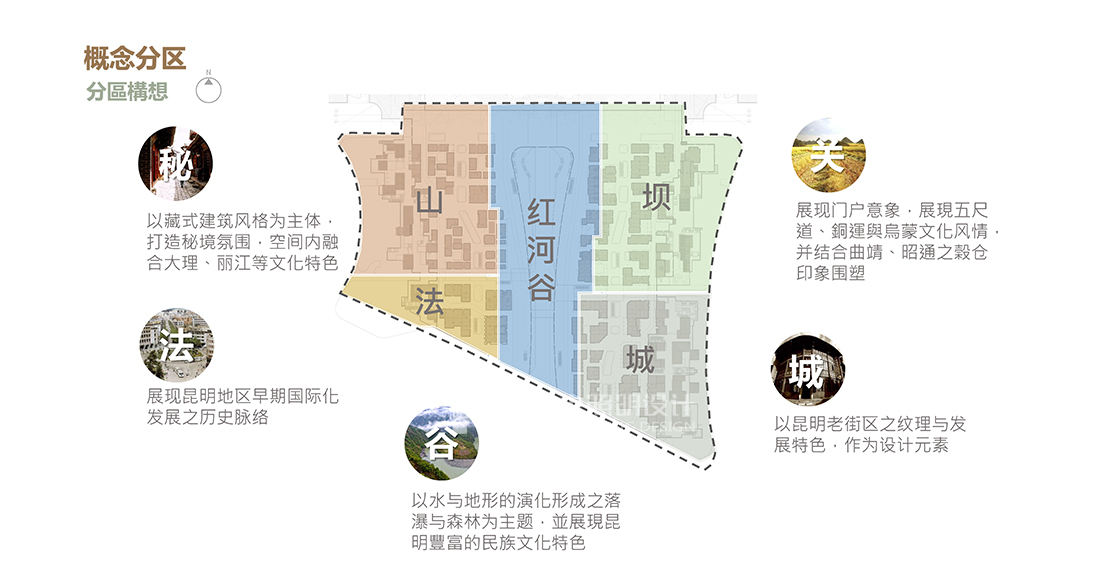 2、滇東北片區(qū):(壩之廣場)以展現(xiàn)門戶意象,展現(xiàn)五尺道、銅運與烏蒙文化風(fēng)情,并結(jié)合曲靖、昭通糧倉印象圍塑。