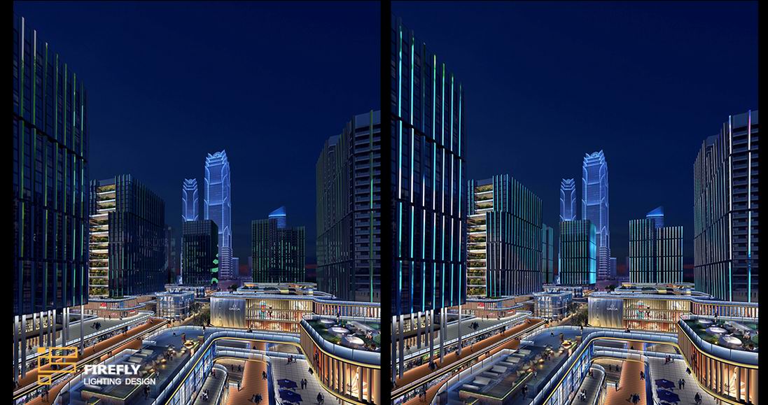 燈光氛圍:燈光應(yīng)給人以震撼感,達(dá)到吸引人流,匯聚人氣與財(cái)富的作用。燈光形式:注重?zé)艄庹w性的同時(shí)結(jié)合建筑的不同功能屬性(商業(yè)樓,辦公樓、展覽館……)。