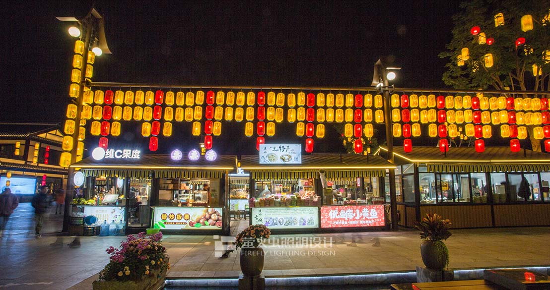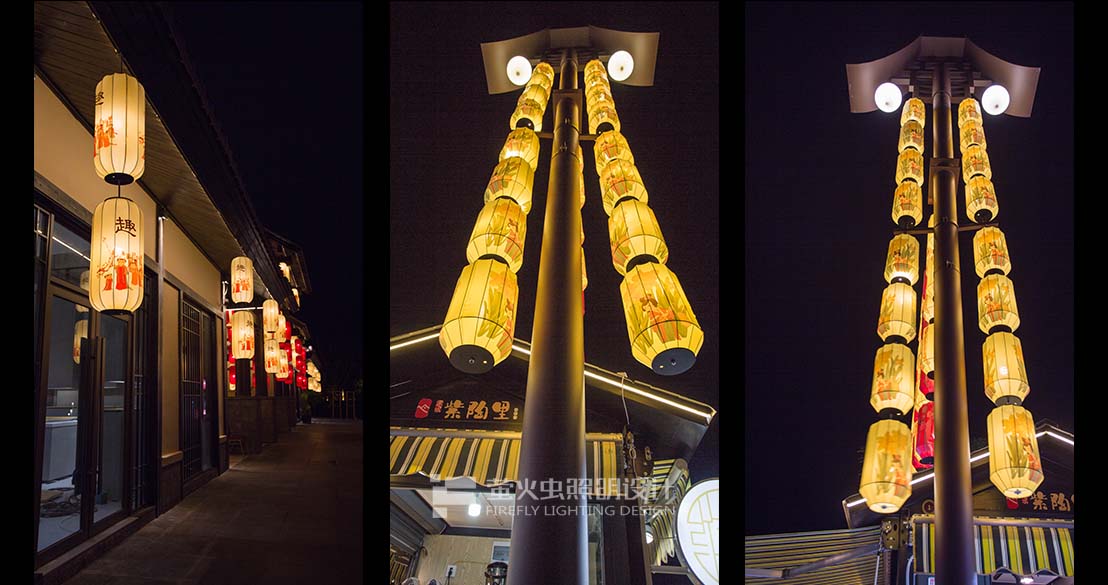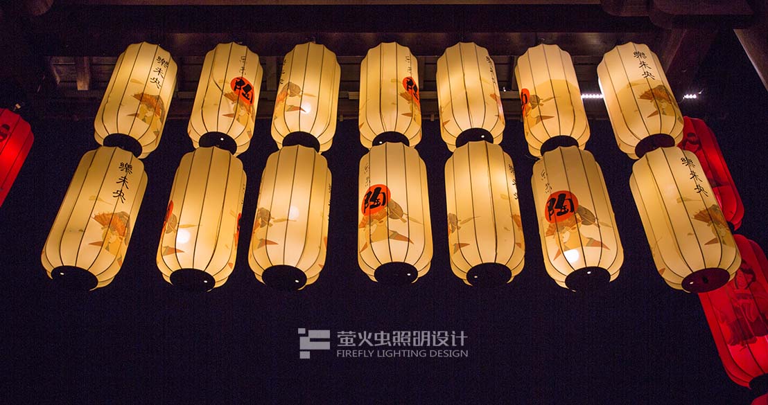 以漢唐文化孝義、詩禮、小橋流水、市井生活為國潮燈籠創(chuàng)作元素,創(chuàng)作了夢回漢唐、樂未央、詩酒年華、紫茶夜話、四個主題燈光氛圍完成從漢唐街市到都市小飲的穿越。四個主題系列的燈籠設計希望帶給游客們在紫陶里市集亦一樣的吃購體驗。