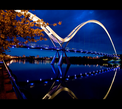 橋梁夜景照明的目的、表現(xiàn)手法和內(nèi)容橋梁夜景照明目的不僅在于為交通安全提供了基本照明環(huán)境,同時(shí)橋梁護(hù)欄照明加強(qiáng)視覺引導(dǎo)性,使司機(jī)提前接收前方信息以及橋面約束信息,而且增加了建筑空間的夜間美,讓人們想到形與色的有機(jī)結(jié)合的美??臻g、時(shí)間和形態(tài)是橋梁夜景照明的三種表現(xiàn)手法。其中空間法是根據(jù)照明燈具不同位置、不同亮度、不同照射角與照射對(duì)象產(chǎn)生有層次、有立體感的照射效果。時(shí)間法是依據(jù)根據(jù)季節(jié)、節(jié)假日、平日中的黃昏、夜晚和深夜這些時(shí)間段進(jìn)行色彩變化,創(chuàng)造富于變化的橋梁夜景。形態(tài)法就是結(jié)合靜態(tài)與動(dòng)態(tài)產(chǎn)生靜中有動(dòng)、流動(dòng)變化的照明效果。在具體的照明設(shè)計(jì)中三種方法相互結(jié)合、相互不充和協(xié)調(diào)達(dá)到最佳的燈光效果。從而給人美的享受和心理平衡。